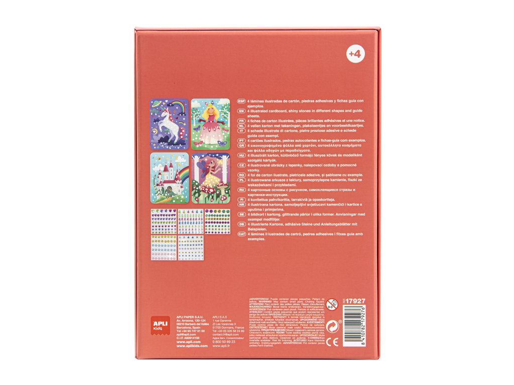 4 ilustrované kartonové archy / 276 diamantů různých barev / 1 průvodní aršík