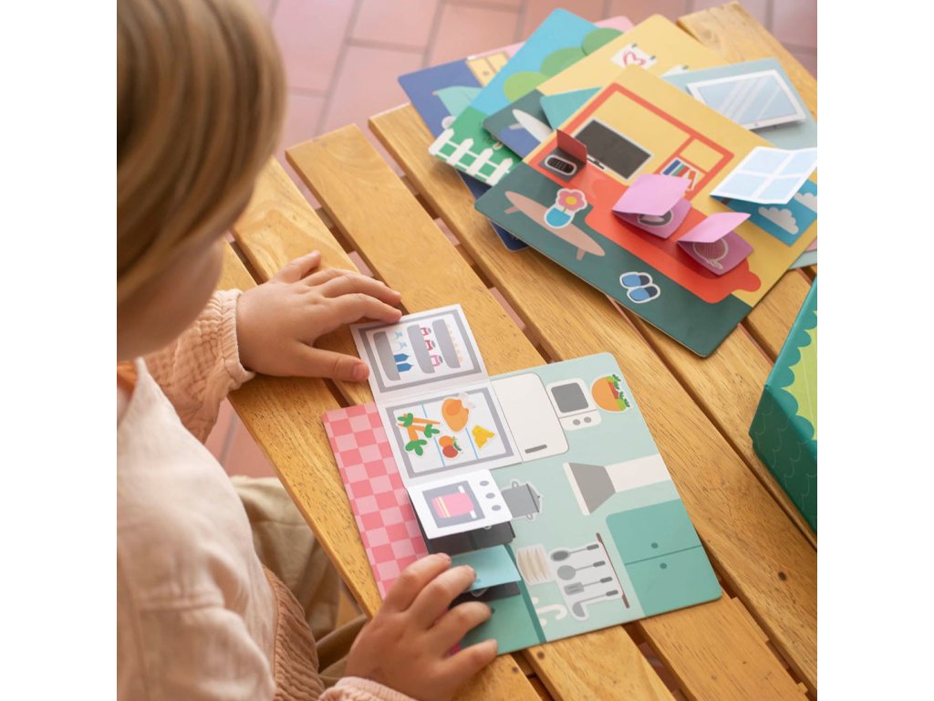 Hra spočívá ve skládání a lepení kartonových prvků na různých aršících s ilustracemi domu a jejich zdobení samolepkami se stejným tématem.