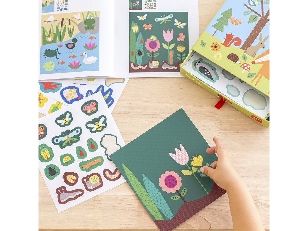 Cílem hry je dokreslit na kartách přírodní prostředí pomocí tematických nálepek různých tvarů a velikostí: zvířata, rostliny, květiny a další prvky.
