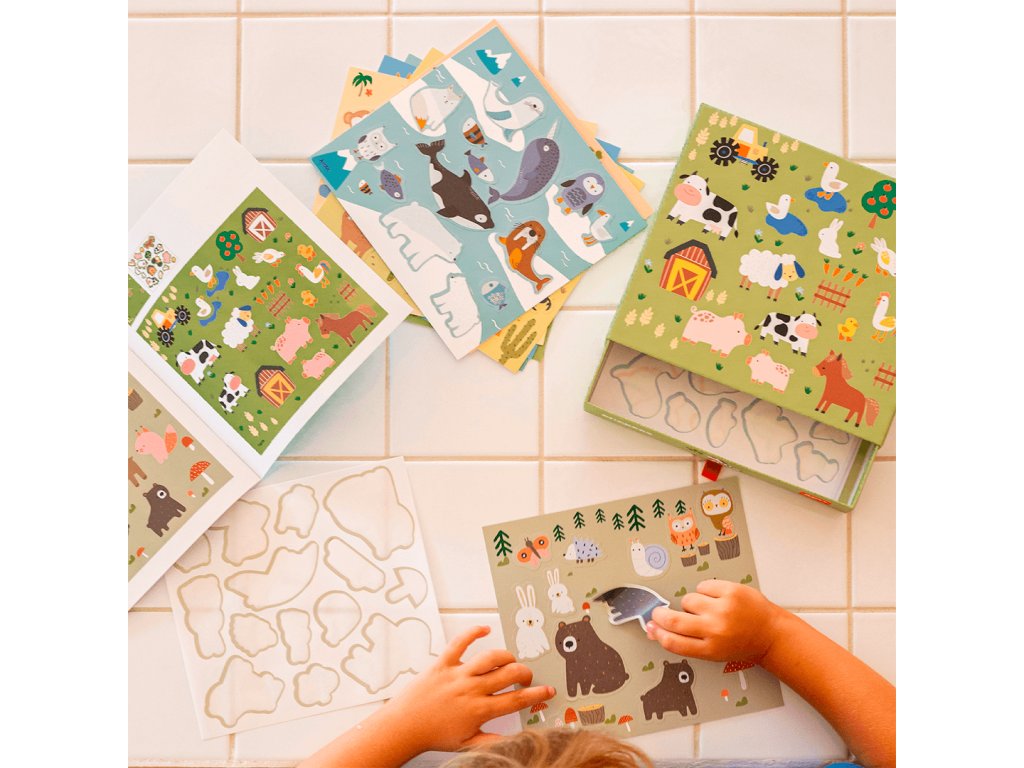 Užijte si s dětmi skvělou zábavu s nalepováním samolepek zvířátek do jejich přirozeného prostředí. Učte je zábavnou formou zákonitosti přírody a života v něm. Vytvářejte s dětmi originální obrázky přírody.