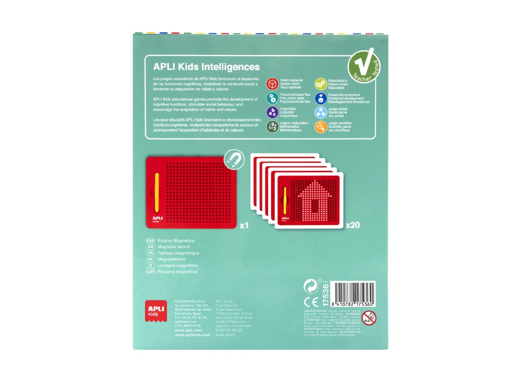 Součástí je také 10 pracovních listů s celkem 20 příklady. Tento produkt pomáhá rozvíjet jemnou motoriku, paměť a představivost, podporuje koncentraci a podporuje logicko-matematickou práci.