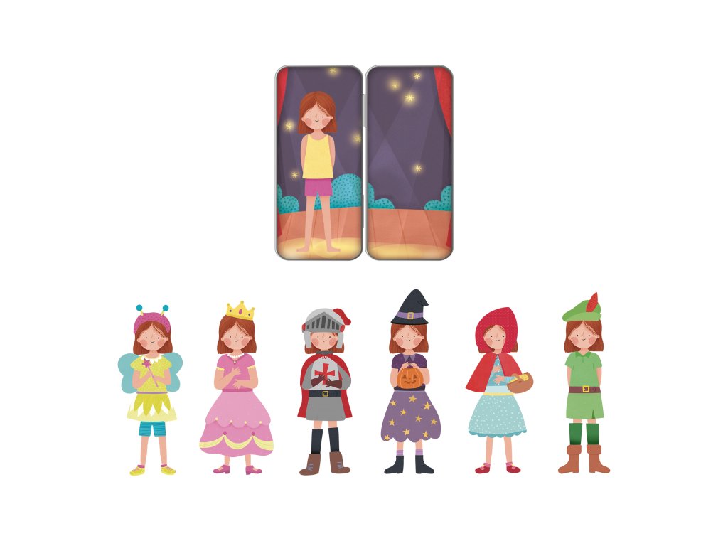 Oblečte postavy tolikrát, kolikrát chcete! Užijte si vytváření divadelních postav a kostýmů na různé příležitosti. Zabavte děti vytvářením divadelních a pohádkových hrdinů na celé hodiny. Krabička je ideální velikost na cesty do batohu, aktovky, nebo je do kapsy.