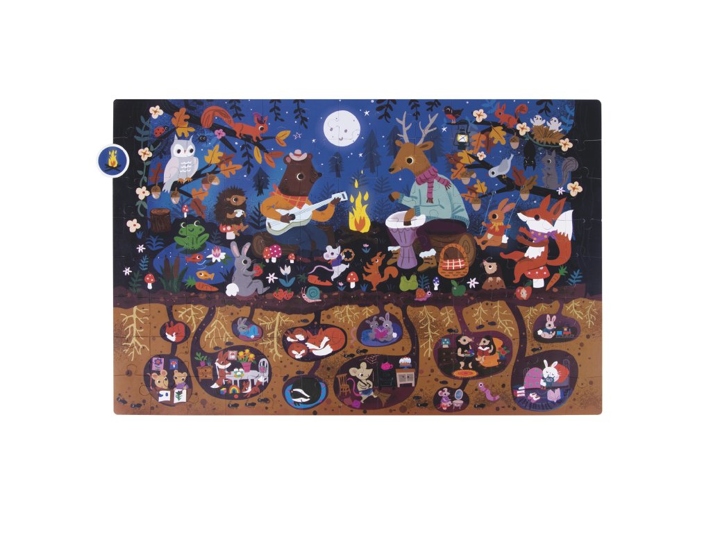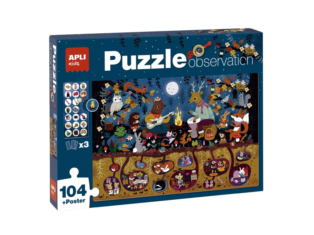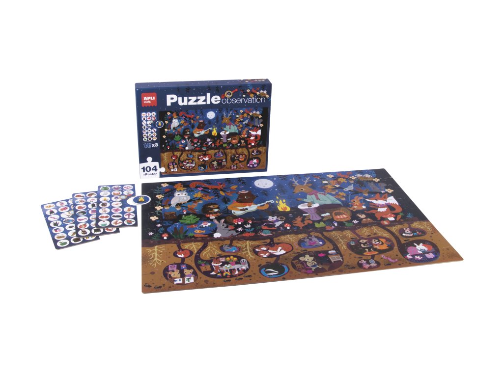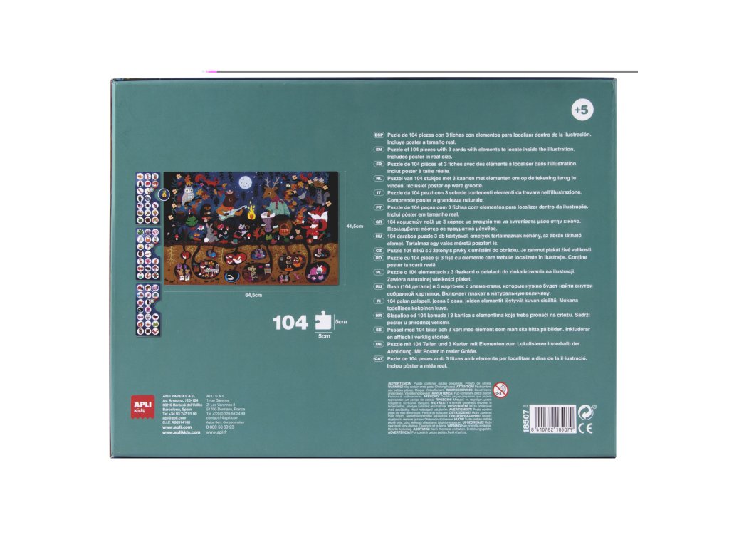 Obsahuje 104 dílků o rozměrech 5 x 5 cm. Rozměr sestaveného obrazu: 64,5 x 41,5 cm. Obsahuje plakát zobrazující skutečnou velikost puzzle pro snazší sestavení a 3 karty s různými předměty, které děti na obrázku následně hledají