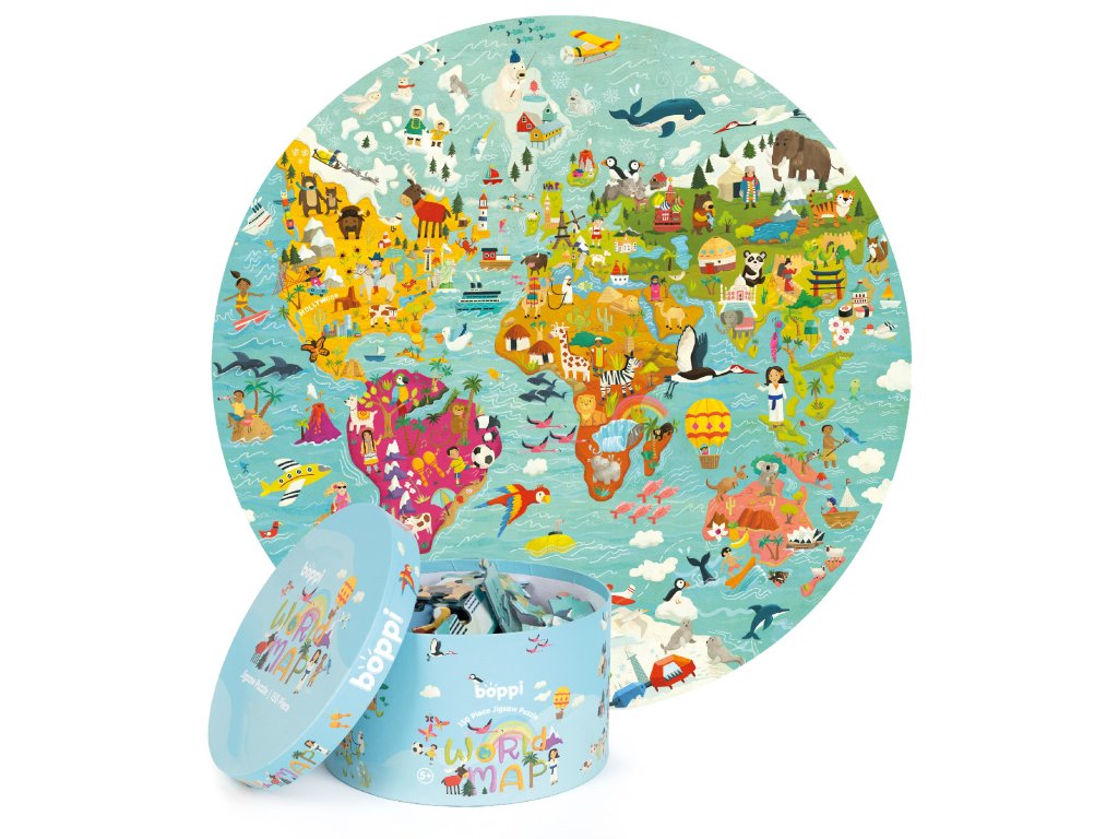 Pojďte s námi na cestu kolem světa pomocí nádherně ilustrovaných puzzle boppi. Poznávejte svět a jednotlivé kontinenty pomocí kruhových puzzle, kde na každém kontinentu najdete vše, co ho vystihuje, zvířata, stavby, lidi a přírodu.