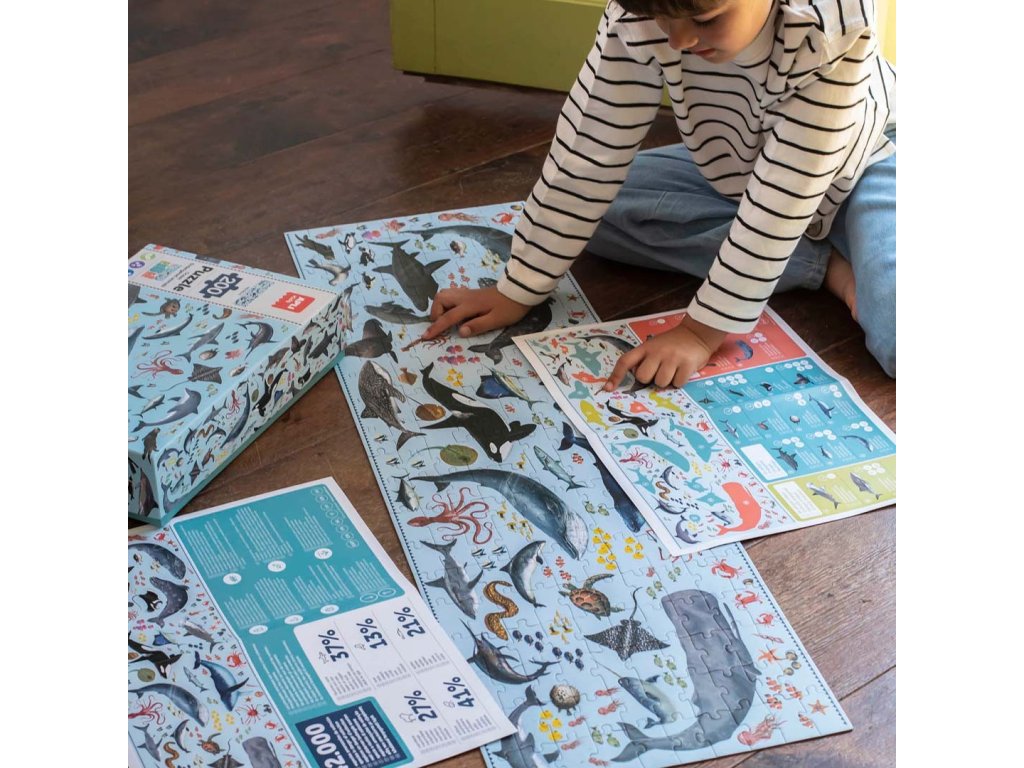 Jakmile je puzzle složeno, děti se budou učit o mořském světě, pomocí edukativní brožury k poznávání zvířat a jejich ekosystému.