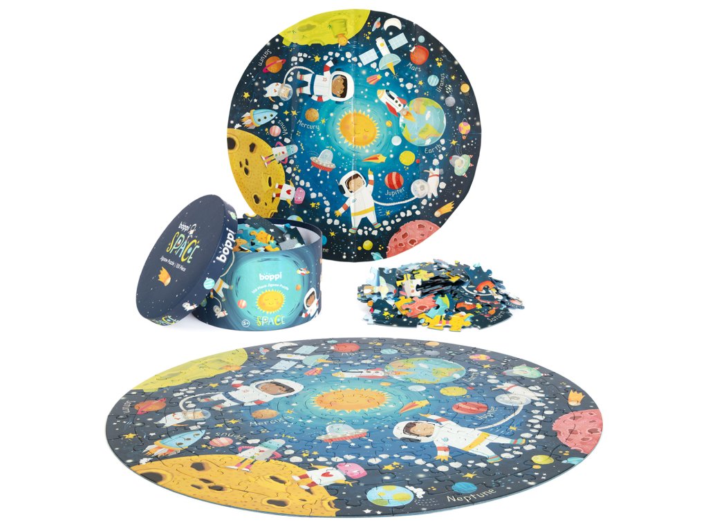 Netradiční kruhové puzzle boppi, se kterými se můžete vydat na dobrodružnou výpravu do vesmíru