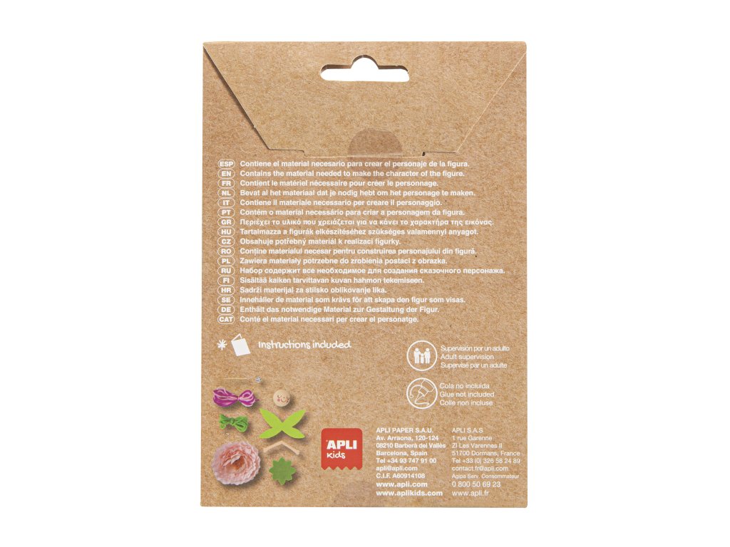 Balení obsahuje: veškerý potřebný materiál k vytvoření figurky zobrazené v balení (kromě lepidla) a návod s podrobným postupem.