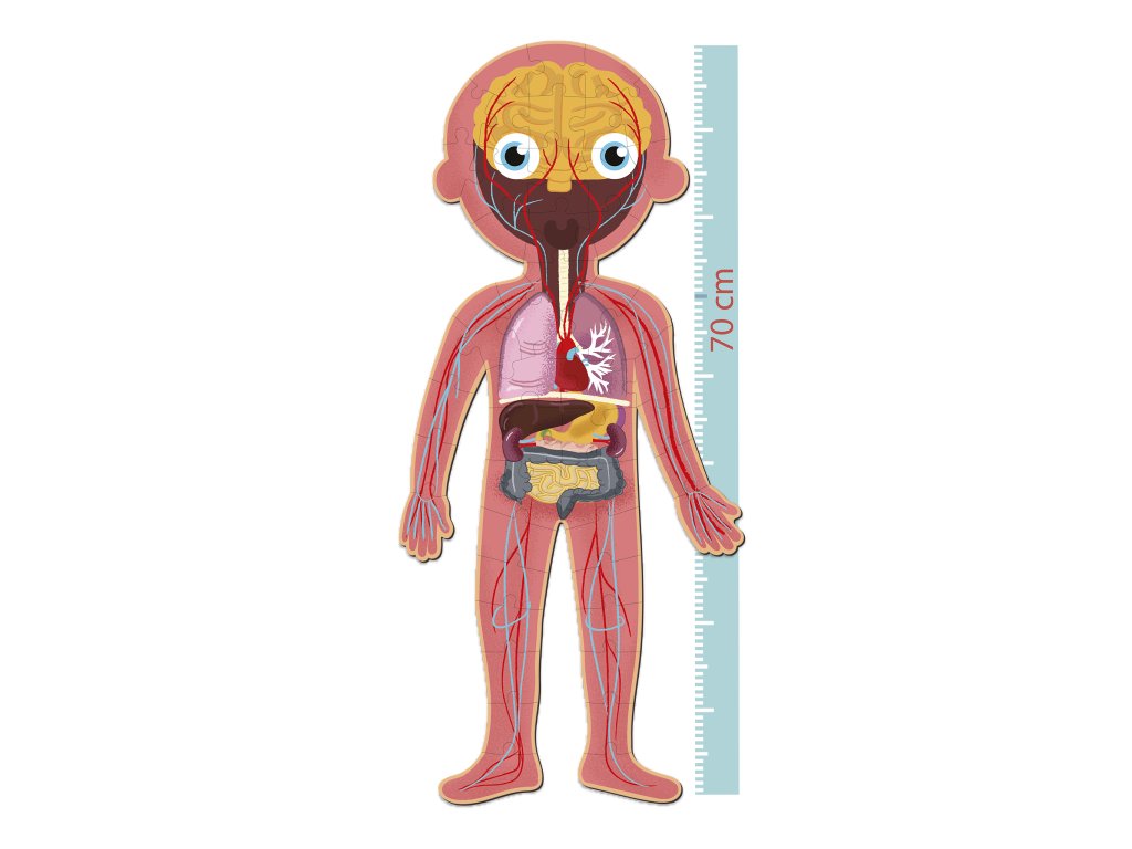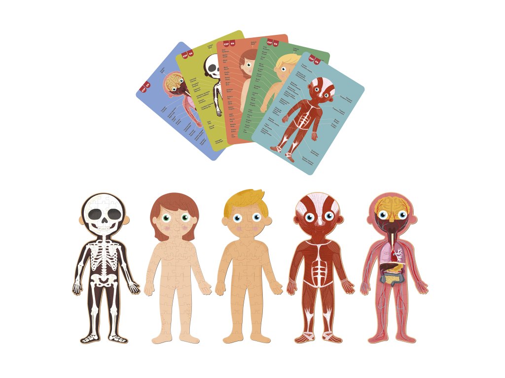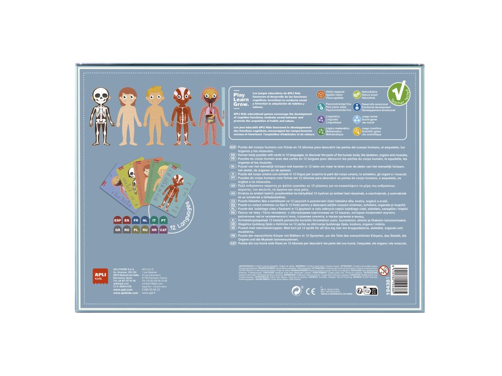 Obsahuje 5 puzzle ve tvaru lidského těla, 15 pracovních listů s podrobnými informacemi ve 12 různých jazycích.
