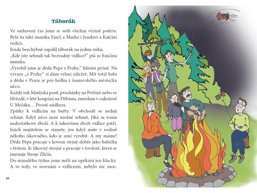 Kniha pro děti i dospělé vás zavede do chatové osady v Pošumaví, kde parta dětí spolu s rodiči tráví víkendy. Příběh se odehrává během jednoho víkendu v malebné chatové osadě uprostřed lesa. Hlavními postavami jsou Kačka a Ilonka, nerozlučné kamarádky a hlavně jejich offline dětství, tak jak ho znají dříve narození.