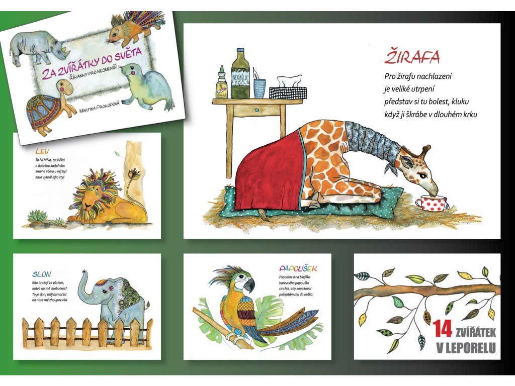 Kniha Za zvířátky do světa obsahuje půvabné obrázky zvířátek, které děti znají ze ZOO, a jednoduché lehce zapamatovatelné říkanky, které zvířátka a jejich život představí, pro děti, které ještě neumí číst.