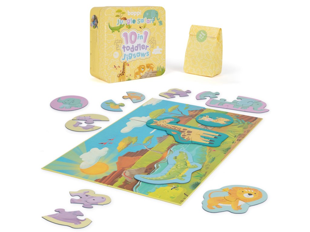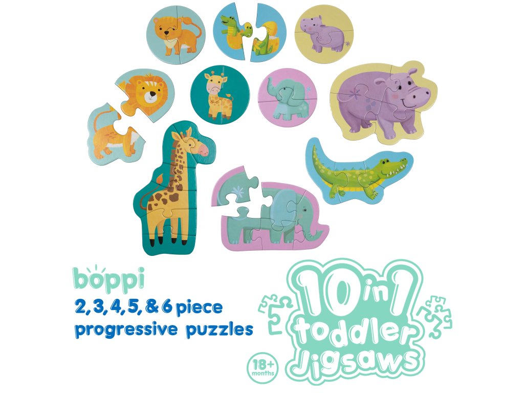 Tematická sada boppi pro batolata od 18-ti měsíců obsahuje 6 x 2, 1 x 3, 4, 5 a 6 kusové puzzle a jednu desku poskytující pozadí pro skládání. 100% recyklovatelné. Vyrobeno z ekologických materiálů.