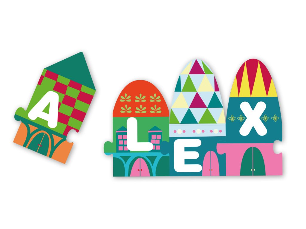 Dílky této skládačky simulují domy různých tvarů a barev, každý dům obsahuje písmeno. Všechny dílky do sebe zapadají a vytvářejí nekonečné kombinace písmen, ze kterých se stávají krásné vesnice.