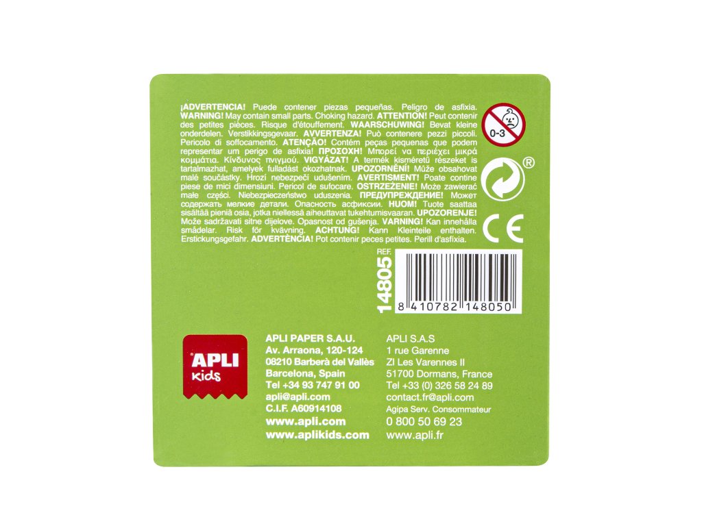 Každá krabice obsahuje 40 kusů různých velikostí. Snadná manipulace pro nejmenší: odolné, bezpečné a snadno manipulovatelné díly díky velikosti a zaobleným hranám. Karton o tloušťce 2 mm s lesklou povrchovou úpravou a Indiana na zadní straně.