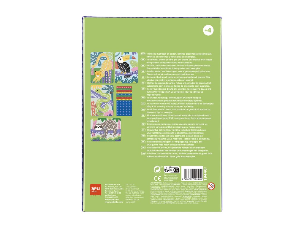 Obsahuje 4 ilustrované listy, předřezané lepicí pryžové desky s motivy a vodicí listy s příklady.