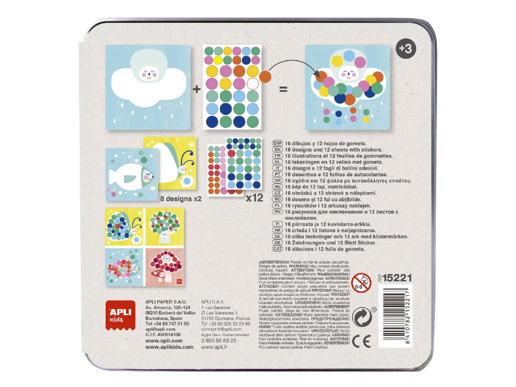 Produkt s originální prezentací a atraktivním designem: kovová krabice s exkluzivním designem APLI Kids, která se hodí i pro ukládání dětských předmětů. Hra určená pro nejmladší členy rodiny, doporučeno pro děti od 3 let.