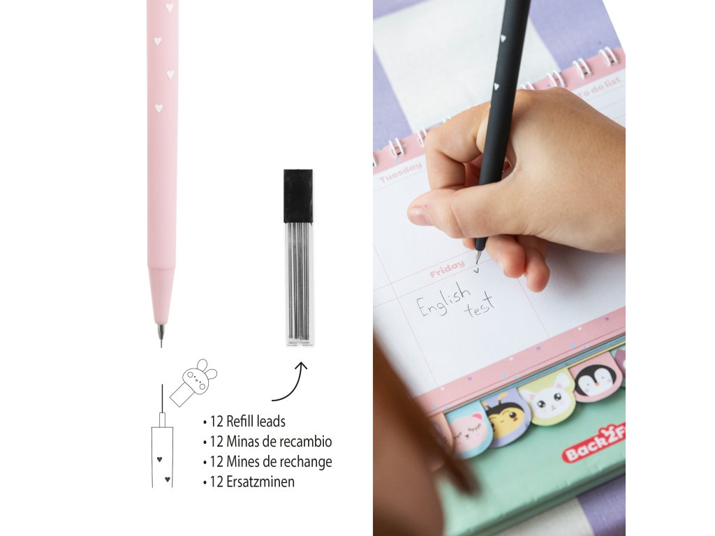 Obsah: 1 jednotka, s náplní 12 náplní v plastové krabičce. Mechanická tužka: Ø15 x 162 mm. Tuha: 2B černý 0,5 mm.